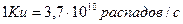Измеряется в кюри (Ku)