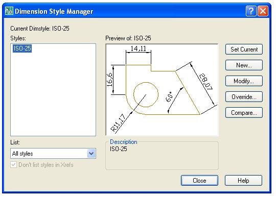 Рисунок 3.6. Диалоговое окно размерных стилей.