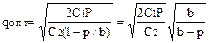 Максимальная величина запаса qmax=(b-p)/t=(b-p)q/b=(1-p/b)/q