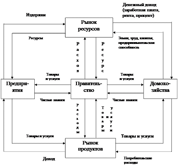 Проблему координации экономической деятельности в рыночных условиях можно проанализировать с помощью модели кругооборота товаров и доходов (рис. 1).