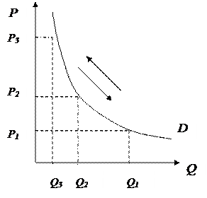 - движение вдоль кривой спроса показывает ответную реакцию потребителей на изменение цены товара.