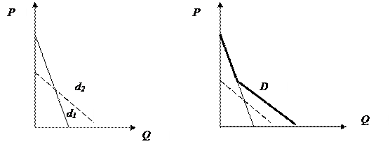 Рыночный спрос определяется суммированием величин индивидуального спроса при разных ценах (рис. 2).
