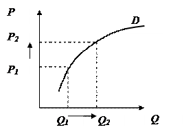 В экономической теории принято откладывать независимую переменную (цену P) по вертикальной, а зависимую (величину спроса Q) – по горизонтальной оси (рис.1).