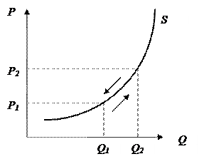 Изменение объема предложения в зависимости от изменения цены на товар графически выглядит как движение по кривой предложения (рис. 5).