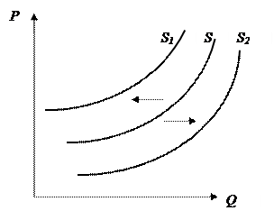 Во всех случаях, когда меняется не цена товара, а другие условия, речь идет об изменении функции предложения. Изменение предложения означает, что при каждом данном уровне цены происходит увеличение или уменьшение предложения.