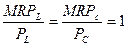 Тот же принцип сохраняется при вовлечении в производство дополнительных единиц капитала, т. е. MRPС (предельный продукт капитала в денежной форме) равен РС, где символом РС обозначается цена капитала.