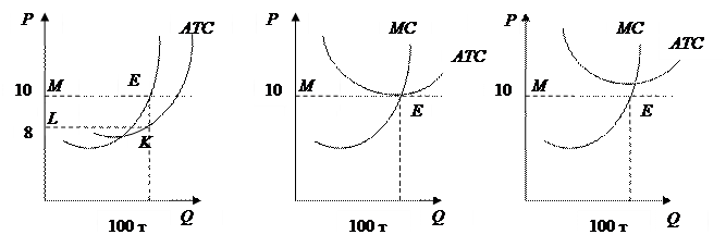 Оптимальный объем производства зерна устанавливается в точке пересечения кривой предельных издержек МС и кривой уровня цен, т.е. в точке Е. Фермер А получает в этом случае сверхприбыль, которая представляет собой разность между ценой 1 кг зерна и общими средними издержками АТС. На графике это площадь прямоугольника EKLM. Фактически это и есть дифференциальная рента, полученная за счет более высокого плодородия участка. У фермера В сверхприбыли не будет и, следовательно, дифференциальная рента отсутствует. Фермер С вообще не будет производить зерно, так как его издержки выше уровня цен, сложившихся на рынке.