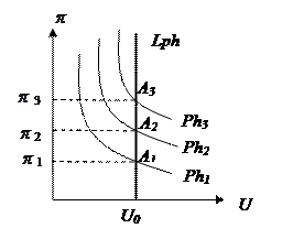 Долгосрочная кривая Филлипса Lph образуется в результате сдвигов краткосрочных кривых Филлипса вверх в соответствие с увеличением роста цен