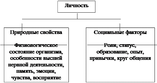 Личность – это совокупность индивидуальных социальных и психологических качеств, характеризующих человека и позволяющих ему активно и сознательно действовать. Другим свойством личности является активная деятельность, направленная на познавание и преобразование окружающего мира. И третье свойство личности заключается в устойчивости, что позволяет прогнозировать поведение человека. Поведение людей определяется эмоциональными и рациональными факторами, внутренними склонностями и внешней обстановкой, вкусами, взглядами, мотивацией.