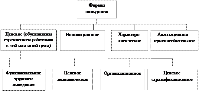 Современные подходы к человеку на производстве базируются на понимании решающей роли для процветания организации именно отношения к труду ее членов. Трудовое поведение включает в себя несколько форм (рисунок 7).