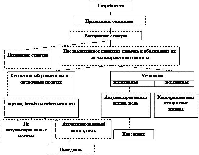 Таким образом, стимул непосредственно ориентирован на потребность, ее удовлетворение, мотив же является главным соединительным звеном, которое при определенных условиях проскакивает между потребностью и стимулом. Для этого стимул должен быть более или менее осознан и принят работником.