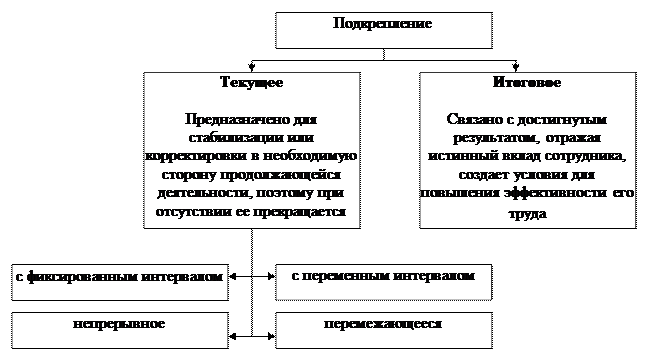 В зависимости от объекта стимулирования (деятельность или ее результат), подкрепление (наказание) могут быть текущим и итоговым (рисунок 12)