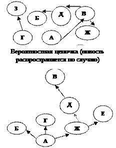 «Сорта винограда ». Нередко у менеджеров создается впечатление, что «виноградная лоза» организована по принципу цепочки, в которой А говорит Б, который сообщает новость В, передающему ее Г, и т. д. до тех пор, пока через 28 человек информация не доходит до Я — со значительным опозданием и в весьма искаженном виде. Но, как правило, «лоза» в значительно большей степени напоминает образцы, представленные в правой части рисунка 21. Работник А сообщает новость трем-четырем сотрудникам (например, Б, Г и Ж). Полученную информацию передадут дальше только некоторые из них, но не одному, а опять же нескольким коллегам. Таким образом, по мере устаревания информации увеличивается число владеющих ею людей и новость постепенно «умирает», поскольку не все, кто получил эти сведения, распространяют их. Такой тип сети называется гроздевой цепью, потому что каждая связь в цепи стремится проинформировать «гроздь» коллег, а не одного из них виды цепочек возникают относительно реже.
