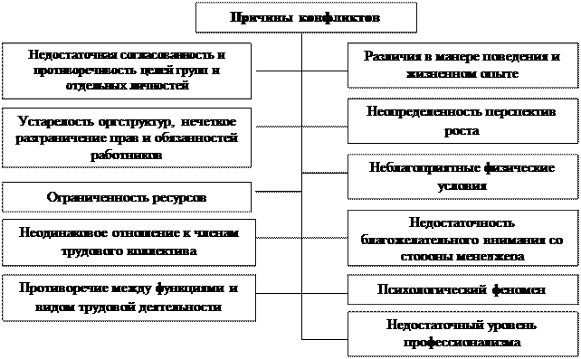 Причины конфликтов. Каждый конфликт имеет свою причину (источник) возникновения. Причины, порождающие конфликты можно сгруппировать (рисунок 42)
