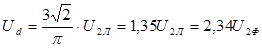 где U 2Л, U 2Ф – соответственно действующее значение линейного и фазного напряжения вторичной обмотки трансформатора.