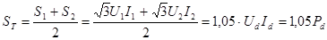 | Шестипульсовая мостовая (ПВЭ-5) | 2,34 | 0,82 | | | 1,045 | 1,05 | 2,09 × Рd | |