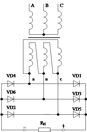 Рис. 3.11. Схема шестипульсового мостового выпрямителя