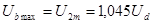 Максимальное обратное напряжение на закрытом вентиле равно амплитуде линейного напряжения: