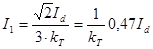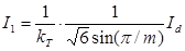 Если рассмотреть формулу (3.31) в общем виде, то для схем выпрямления с m пульсами действующее значение тока первичной обмотки трансформатора можно записать в виде: