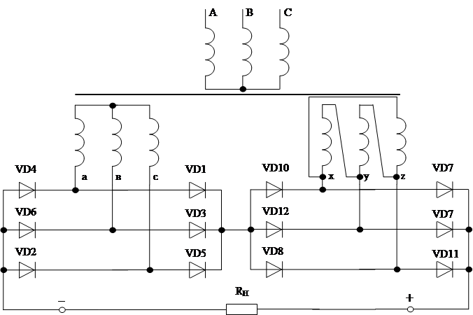 Рис. 3.16. Схема двенадцатипульсового выпрямителя