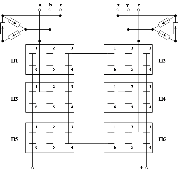 Рис. 3.19. Схема главных электрических соединений выпрямительного агрегата ТПЕД для двенадцатипульсовой схемы выпрямителя