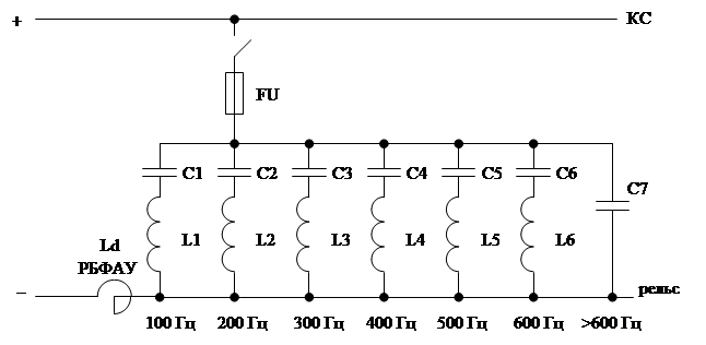 Для подавления гармоник на выходе выпрямителя устанавливается сглаживающий фильтр, состоящий из сглаживающего реактора РБФАУ и нескольких резонансных контуров, настроенных на частоты гармоник (рис. 6.1).