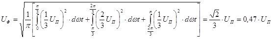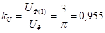 Напряжение первой гармоники, на которой в нагрузку передаётся активная мощность, может быть определено по формулам: