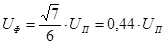 При работе инвертора с углом проводящего состояния тиристоров 120 0Эл ток одновременно проводят только два тиристора. Эффективное значение фазного и линейного напряжения ещё более уменьшаются и составляют