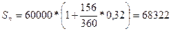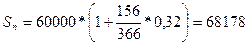 Пример 5. Ссуда в размере 60000 рублей выдана 12 марта 2004 года с погашением 15 августа того же года под 32% годовых. Рассчитать различными способами сумму к погашению, если начисляются простые проценты. Предварительно определим число дней ссуды: точное – 156 дней (228-72), приближенное - 153 дней (18 дней марта (30-12) + 120 (по 30 дней четырех месяцев: апрель, май, июнь, июль) + 15 дней августа).