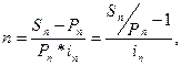 Имея в виду, что P = S/(1 + n*i), находим годовую ставку наращения