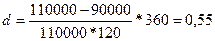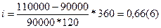 Пример 7. В контракте предусматривается погашение обязательства в сумме 110000 рублей через 120 дней. Первоначальная сумма долга – 90000 рублей. Необходимо определить доходность ссудной операции для кредитора в виде годовой ставки процента и учетной ставки (К = 360).