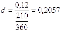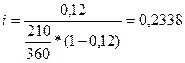 Пример 8. Стороны договорились о том, что из суммы кредита, выданной на 210 дней, удерживается дисконт в размере 12%. Необходимо определить цену кредита в виде годовой ставки простых процентов и учетной ставки (К = 360).