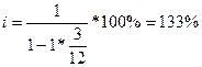 Пример 9. Доходность по дисконтной ценной бумаге со сроком обращения 3 месяца оценена в виде дисконтной ставки, равной 100% годовых, а доходность размещения средств на 3-месячный депозит – 120% годовых. Сравнить эффективность этих операций.
