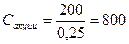 Пример 33. Рассчитайте стоимость акции, если прибыль, приходящаяся на акцию 200 рублей, процентная ставка 25%. Сколько будет стоить акция, если ежегодный прирост прибыли 3%.