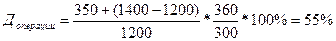 Пример 38. Рассчитайте годовую доходность операции с акциями: цена приобретения 1200 рублей, цена продажи 1400 рублей, выплаченный дивиденд составляет 350 рублей, длительность операции 10 месяцев.