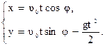 Уравнение траектории найдём путем исключения параметра t из равенств (1.44)