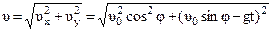и равнопеременное по оси OY с ускорением свободного падения g и начальной скоростью