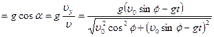 Ускорение свободного падения в любой точке траектории можно разложить на его касательную и нормальную составляющие, где модуль касательного ускорения