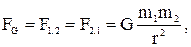 где F1,2,F2,1– силы взаимодействия направленные вдоль прямой соединяющей материальные точки, G = 6,67