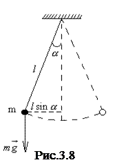 Математический маятник представляет собой материальную точку, подвешенную на невесомой и нерастяжимой нити, например, небольшой шарик, подвешенный на тонкой длинной нити (рис. 3.8). Отклонение маятника от положения равновесия определяется углом