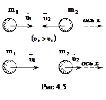 Рассмотрим случай центрального соударения двух однородных шаров. Удар называется центральным, если шары до удара движутся вдоль прямой, соединяющей их центры (рис 4.12).