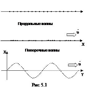 Расположение частиц в упругой среде в момент возникновения продольной или поперечной волны приведены на рис. 5.1. До появления волны частицы среды вдоль направления х находились на одинаковых расстояниях.
