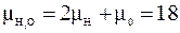 Молярная масса молекулы, равна сумме молярных масс атомов входящих в ее химическую формулу. Например, молярная масса воды: