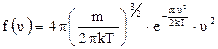 Из предположения хаотичности молекулярного движения следует, что скорости молекул идеального газа могут принимать любые значения в пределах от 0 до ∞. Максвеллом в 1859 г. теоретически найдена функция распределения молекул по скоростям и энергиям, которая позволяет вычислять чи с ло молекул, находящихся в единице объема газа, скорость которых лежит в единичном интервале скоростей dυ в окрестности заданной скорости υ. Функция распределения имеет вид