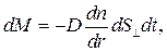 где D — коэффициент диффузии; dn/dr — градиент концентрации в направлении r.