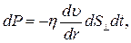 где η— коэффициент внутреннего трения (коэффициент вязкости); dυ/dr — градиент скорости движения молекул в направлении r.