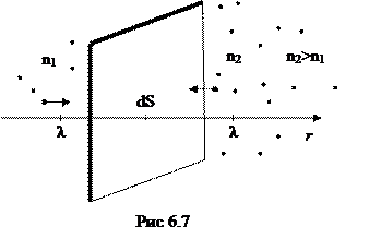 При диффузии в среде с разной концентрацией n молекул вещества движутся через площадку dS как по выбранному направлению