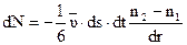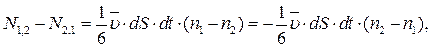 Разность между числом молекул прошедших площадку dS