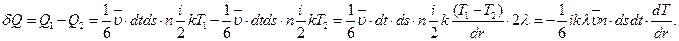 Количество тепла перенесенного из более нагретого слоя в менее нагретый на участке 2λ вещества с концентрацией n молекул.