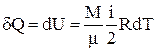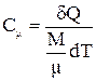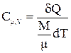 1) молярную теплоемкость равную количеству тепла δQ, которое необходимо сообщить киломолю вещества, чтобы повысить его температуру на один градус